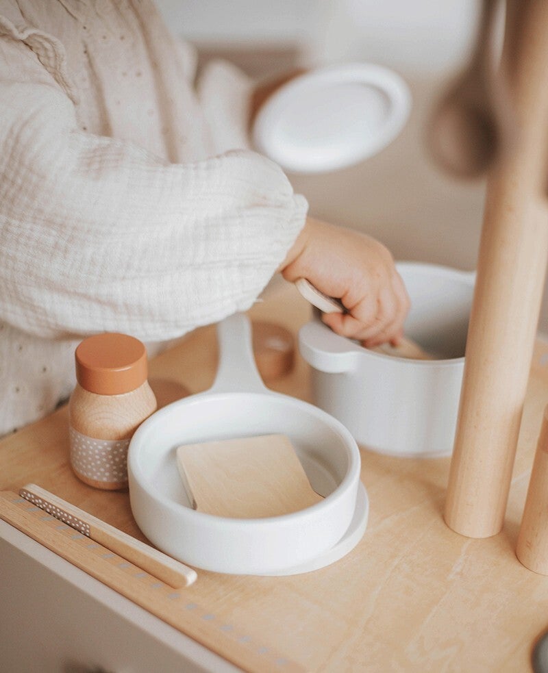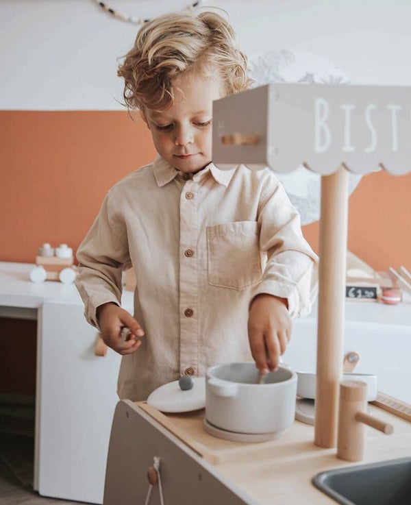 Creëer chique maaltijden en serveer ze in je eigen fantastische bistro. Kleine chef-koks hebben alle ruimte om eersteklas gerechten te creëren in hun kookeiland. Alle accessoires zoals een pan, een koekenpan, een koksmuts, een spatel en een lepel zijn inbegrepen.