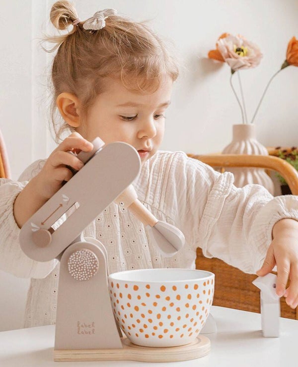 Deze keukenrobot is net wat de kleine chefs nodig hebben om hun denkbeeldige creaties tot leven te brengen. De mixer wordt naar omhoog gezet zodat alle ingrediënten in de mengkom kunnen toegevoegd worden. Breng deze terug omlaag en mixen maar! Door de hendel bovenaan rond te draaien zal de mixer alle ingrediënten mengen. Met de schuifknop kan de mixsnelheid ingesteld worden. Bakplezier is verzekerd!