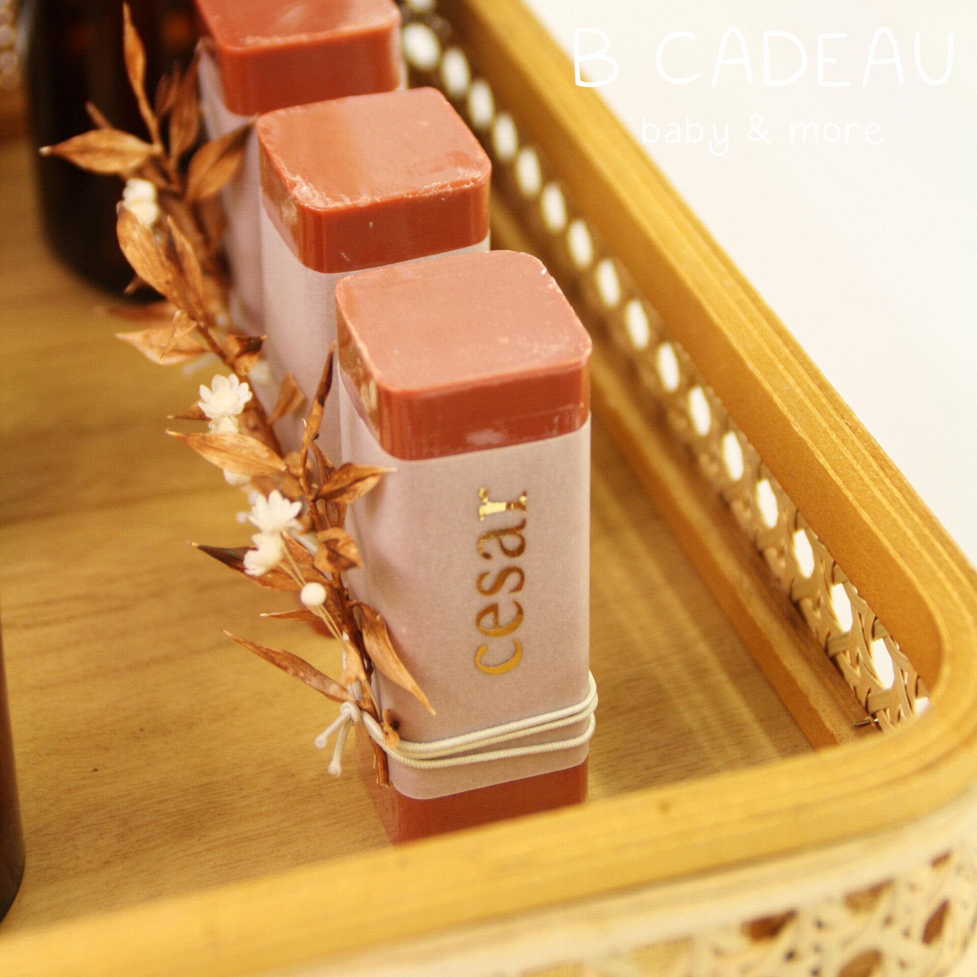 Kalkwikkel om rond de balkvormige zeepjes te wikkelen. Je plakt ze dicht met een stukje plakband of met een sticker.