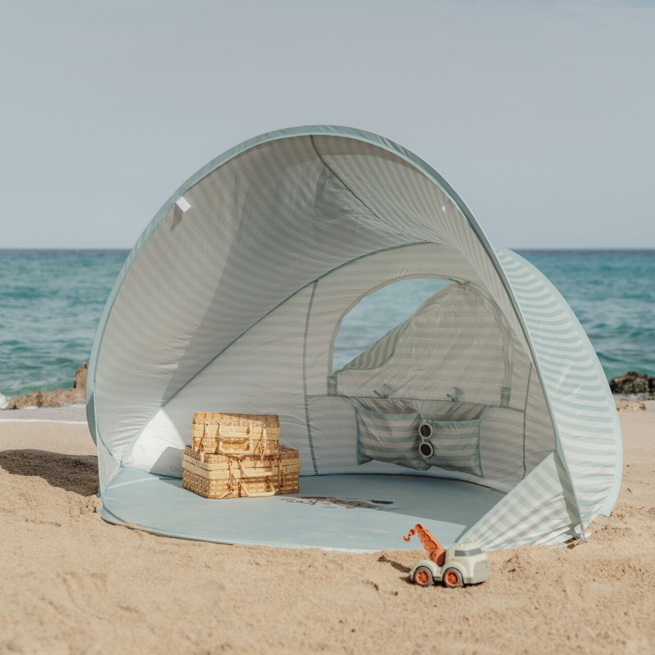 Biedt veiligheid tegen de felle zon en koele bries. Je kan er overal mee naartoe, op het strand, in de tuin of tijdens een picknick. De kindertent is makkelijk op te zetten en op te bergen.