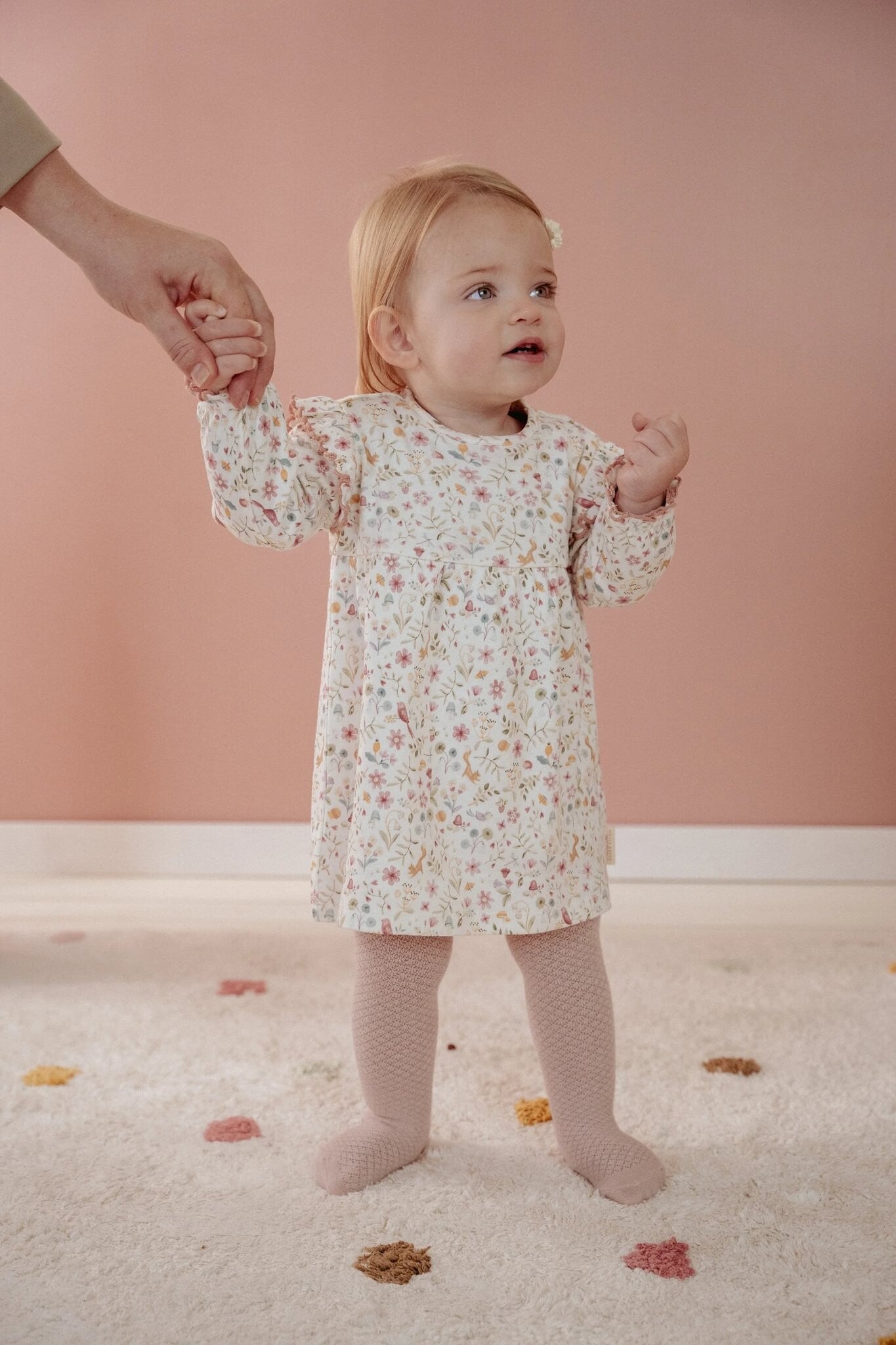 Droom weg in een sprookje van de Fairy Garden! Deze betoverende jurk is gemaakt van zachte, comfortabele stof en heeft een dessin van een magische tuin vol bloemen, blaadjes, eekhoorns, egels, vogels en meer. Het charmante ontwerp heeft schattige ruches op de schouders en de elastische uiteinden van de mouwen zijn voorzien van een extra ruche voor een speels accent. Gemaakt van biologisch katoen, biedt deze jurk je kleintje zowel comfort als stijl. Mix en match met andere items uit de gecoördineerde Fairy Garden-collectie. Verkrijgbaar in de maten 44, 50, 56, 62, 68 en 74.