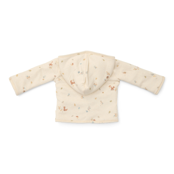 Een laagje stijl voor koudere lentedagen en koele zomeravonden. Deze schattige reversible jas is met zorg en liefde ontworpen voor stijlvol comfort voor je pasgeboren baby. Gemaakt van lichtgewicht en zachte joggingstof, is deze jas perfect om je kleintje warm en knus te houden. Aan de ene kant vind je een subtiele blauwe kleur met zandkleurige boorden, en een klein borduursel van bosblaadjes. Draai het binnenstebuiten en dan komt de mooie Forest Friends-print naar voren, vol bladeren, eikels, paddenstoelen, vossen, egels en meer. Gemaakt van biologisch katoen, licht gewatteerd met een drukknoopsluiting, zorgt deze omkeerbare jas zowel voor comfort als geborgenheid voor je pasgeboren kindje. Het jasje past naadloos bij alle items uit de Forest Friends-collectie en is verkrijgbaar in maten 44, 50, 56, 62, 68 en 74.