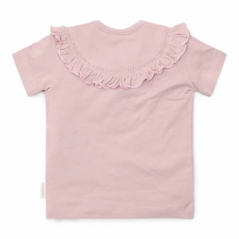 Lila Liefde! Schitter in dit mooie t-shirt! De prachtige lila tint van dit t-shirt voegt een vleugje charme toe aan de garderobe van je kleintje. Gemaakt van zacht biologisch katoen en met korte mouwen, is het perfect voor avonturen in warm weer of om te combineren met een fijn vest tijdens koelere dagen. De halslijn is versierd met schattige ruches en crochetta, en geeft het ontwerp een zoete en verfijnde uitstraling. Perfect te combineren met elk item uit de complete Fairy Garden-collectie, zodat je eindeloos kunt mixen en matchen. Verkrijgbaar in maten 74, 80, 86, 92, 98 en 104.