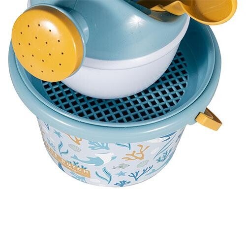 Laten we een zandkasteel bouwen! Dit is je nieuwe favoriete set om mee te nemen naar het strand of de zandbak. Of je nu een kuil wilt graven, zandsculpturen wilt bouwen, je ouders met zand wilt bedekken, schelpen wilt verzamelen of met water wilt spelen, deze mooie speelgoedstrandset Ocean Dreams Blue heeft alles wat je nodig hebt. Met de emmer, schep en hark, gieter en zandzeef heeft je kleintje urenlang speelplezier in het zand.