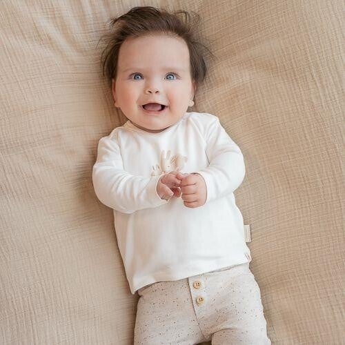 Lieve baby konijntjes! Het gebroken witte shirt is voorzien van twee schattige baby konijntjes en is gemaakt van heerlijk zacht biologisch katoen. Het shirt heeft drukknoopjes op één schouder, zodat je deze gemakkelijk aan- en uit kunt trekken. Aan het shirt zitten labeltjes met het Little Dutch logo en het wortel icoon. Combineer het shirt met een lief broekje en vestje uit onze bijpassende babycollectie. Verkrijgbaar in de maten 44, 50, 56, 62, 68 en 74.