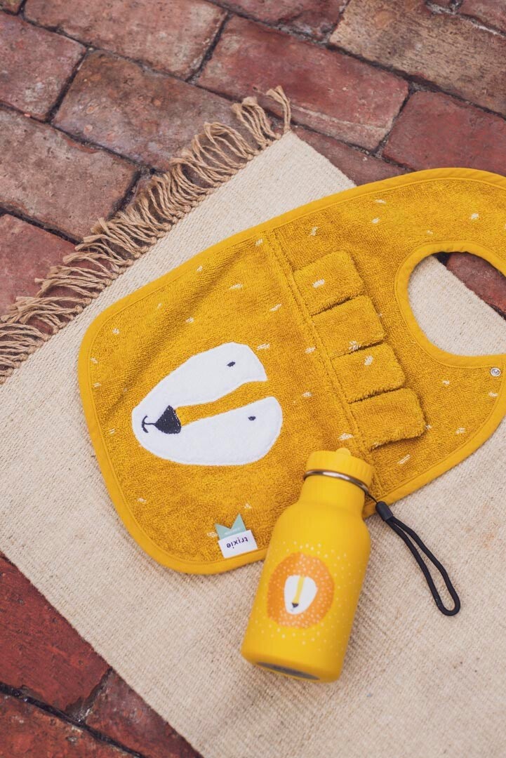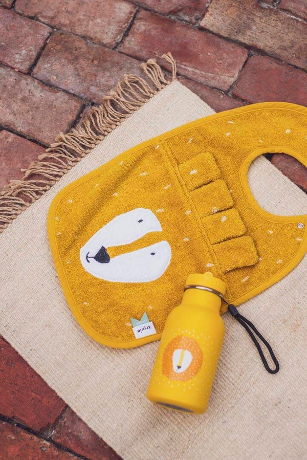 Klaar voor etenstijd met je favoriete dierenvriendje! Dit vrolijke slabbetje met flaporen houdt de kleren van je baby schoon terwijl je van een lekkere maaltijd geniet. Dankzij de twee sets drukknopjes heeft het slabbetje twee verschillende maten; zo gaat hij langer mee. Het slabbetje is gemaakt van 100% biologisch katoen dat superzacht is en goed absorbeert.