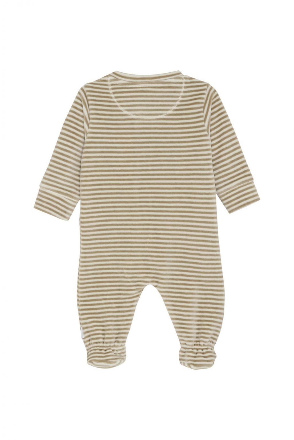 Unisex boxpak Souci van Noppies Baby, gemaakt van GOTS-gecertificeerd katoen (CU1392474). Het zachte boxpakje heeft een gestreepte print, ronde hals, drukknopen in het midden en lange mouwen. De drukknoopjes tussen de pijpjes maken het aankleden en verschonen van je kindje makkelijk. Het kledingstuk tijdens het verschonen niet volledig uit hoeven trekken, is een stuk comfortabeler voor je baby. Met GOTS-katoen maak je de beste keuze voor jezelf, je kindje en de wereld. Van de milieubewuste manier waarop het katoen wordt geproduceerd tot een verbod op kinderarbeid, alles voldoet aan hoge standaarden. En het is echt heerlijk om te dragen!
