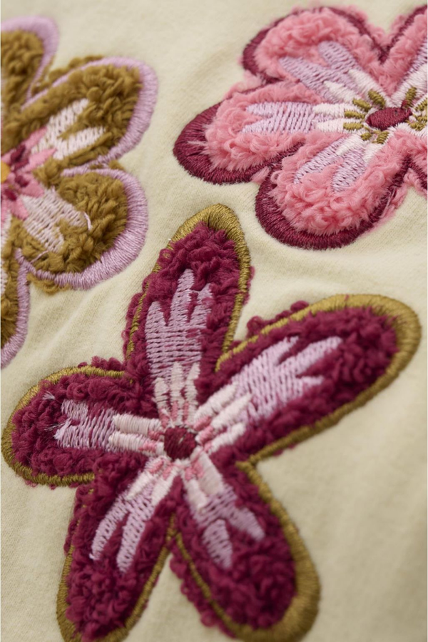 Meisjes sweater Tierra van Noppies Baby is gemaakt van GOTS-gecertificeerd katoen (CU1392474) met geborduurde bloemen aan de voorzijde. De sweater met lange mouwen is voorzien van een ronde hals met drukknoopsluiting en met ruffels aan de uiteinden van de mouwen. Met GOTS-katoen maak je de beste keuze voor jezelf, je kindje en de wereld. Van de milieubewuste manier waarop het katoen wordt geproduceerd tot een verbod op kinderarbeid, alles voldoet aan hoge standaarden. En het is echt heerlijk om te dragen!
