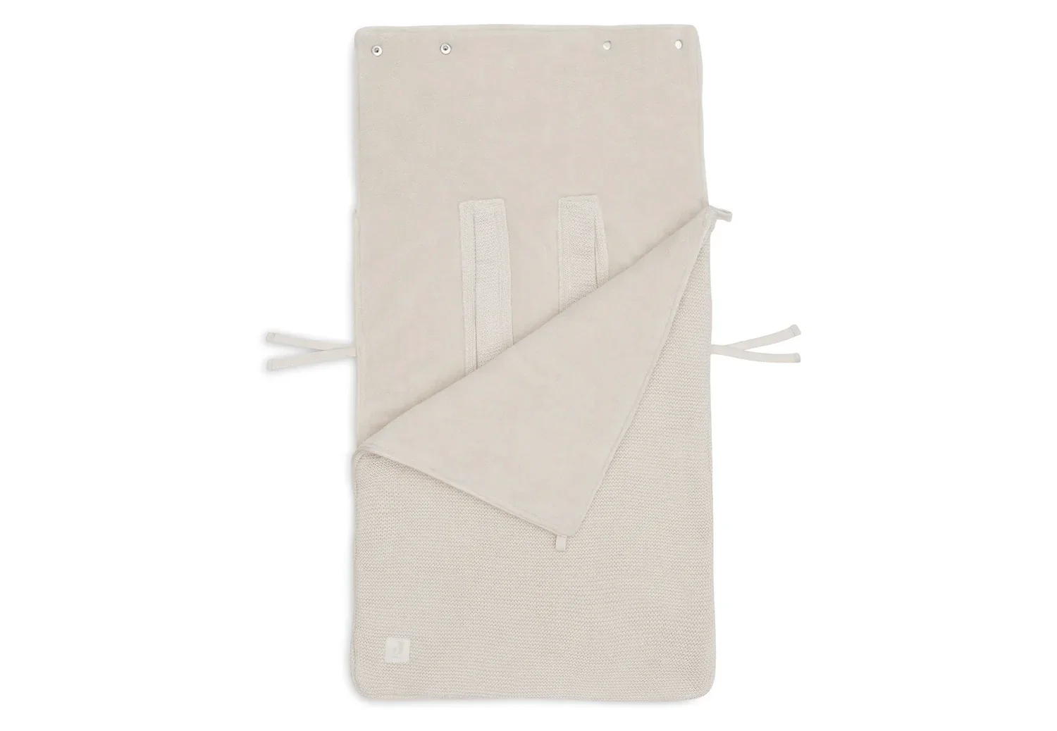 Deze zachte en warme voetenzak is perfect voor in de autostoel of kinderwagen. De buitenkant heeft een stijlvolle gebreide structuur en de binnenkant is heerlijk zachte coral fleece stof. Dankzij de handige openingen past de voetenzak in een 3- of 5-puntsgordel, waardoor hij geschikt is voor groep 0+ autostoeltjes, Maxi-Cosi en kinderwagens. Verkrijgbaar in de neutrale kleur Oatmeal, een mooie basic die overal bij past. Deze voetenzak heeft geen TOG-waarde, omdat de voetenzak bedoeld is om je kleintje warm te houden onderweg en niet als slaapzak.