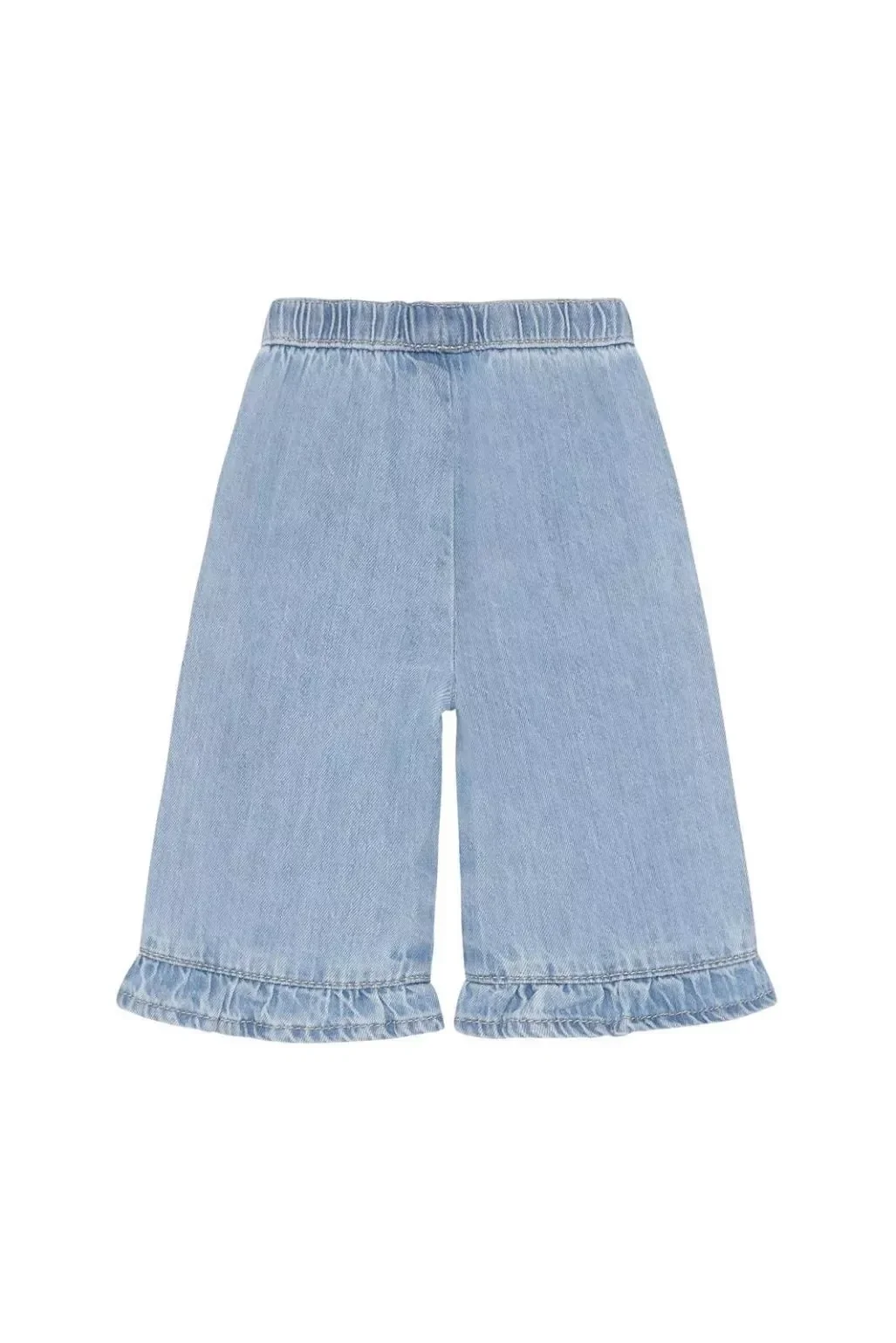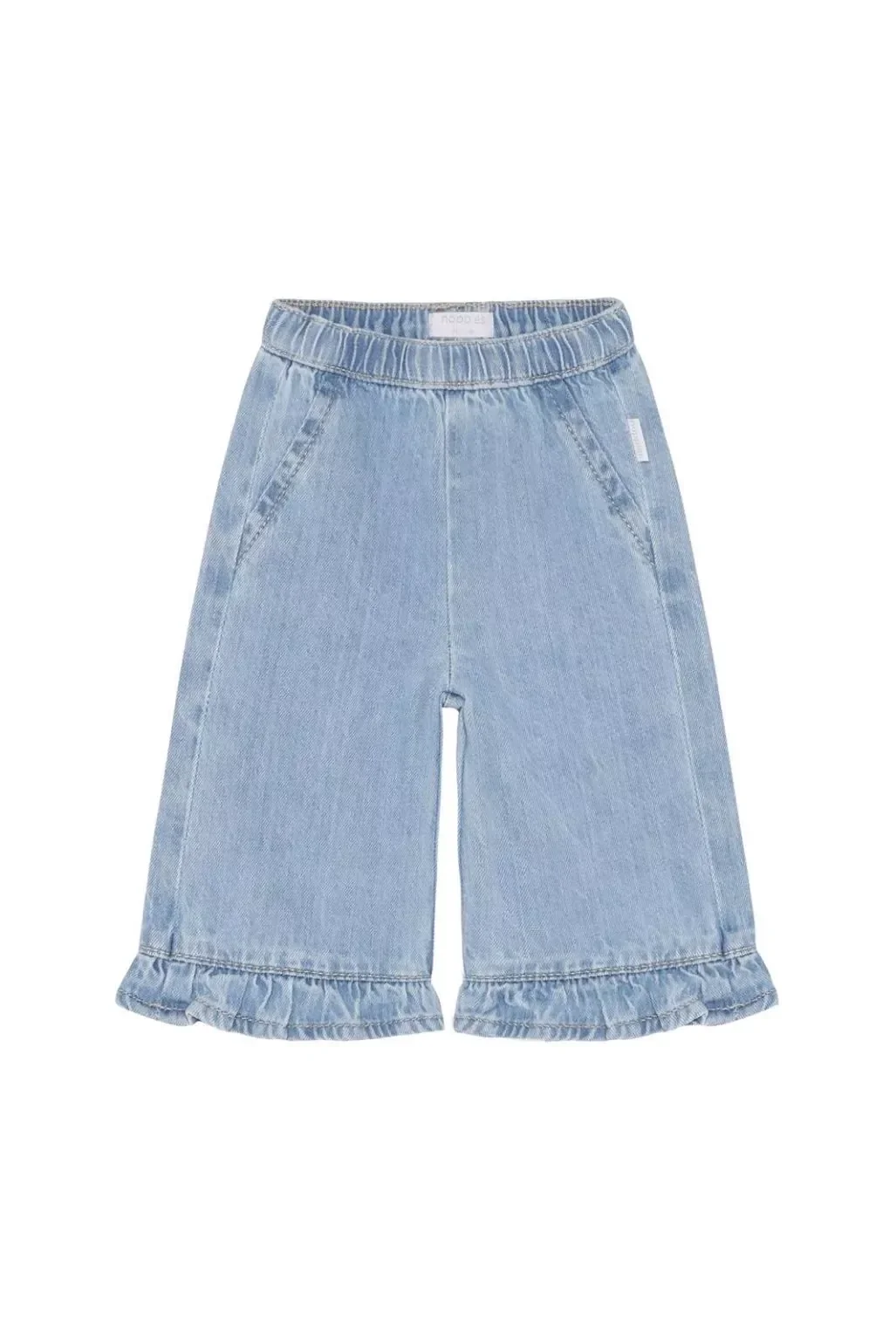 Deze meisjesbroek met rechte pijpen van denim van Noppies Baby is een speelse mix van stoer en lief. Gemaakt van 100% katoen voelt de stof stevig maar comfortabel aan. De rechte pasvorm met comfortabele fit biedt ruimte om te bewegen, perfect voor actieve dagen. Het ruffle detail langs de rand geeft een subtiele girly touch, terwijl de lichtblauwe denimkleur overal bij past. De broek heeft geen sluiting en is daardoor makkelijk aan te trekken. Een echte allrounder voor haar dagelijkse avonturen – combineer met een shirtje of blouseje voor een complete look.