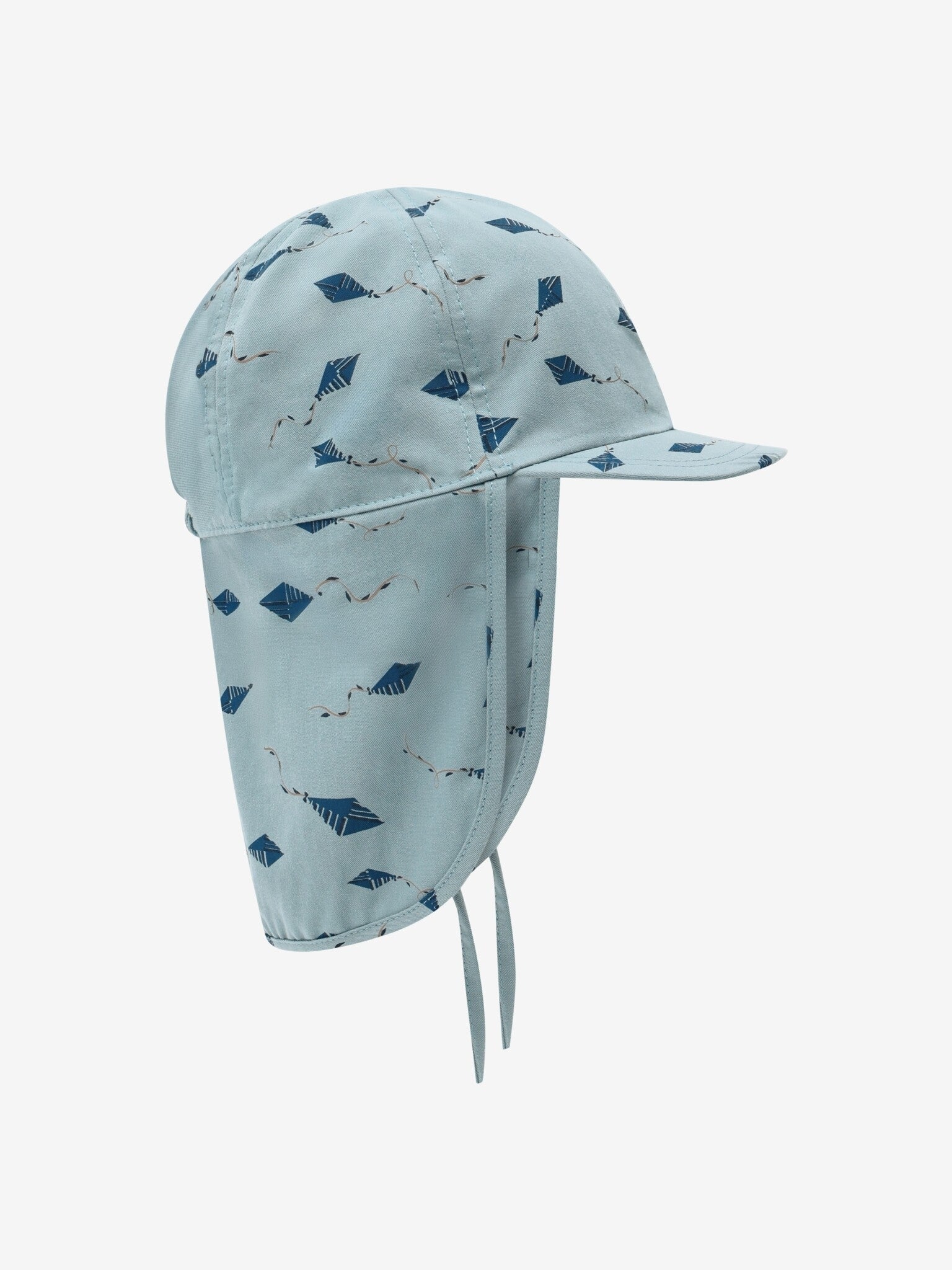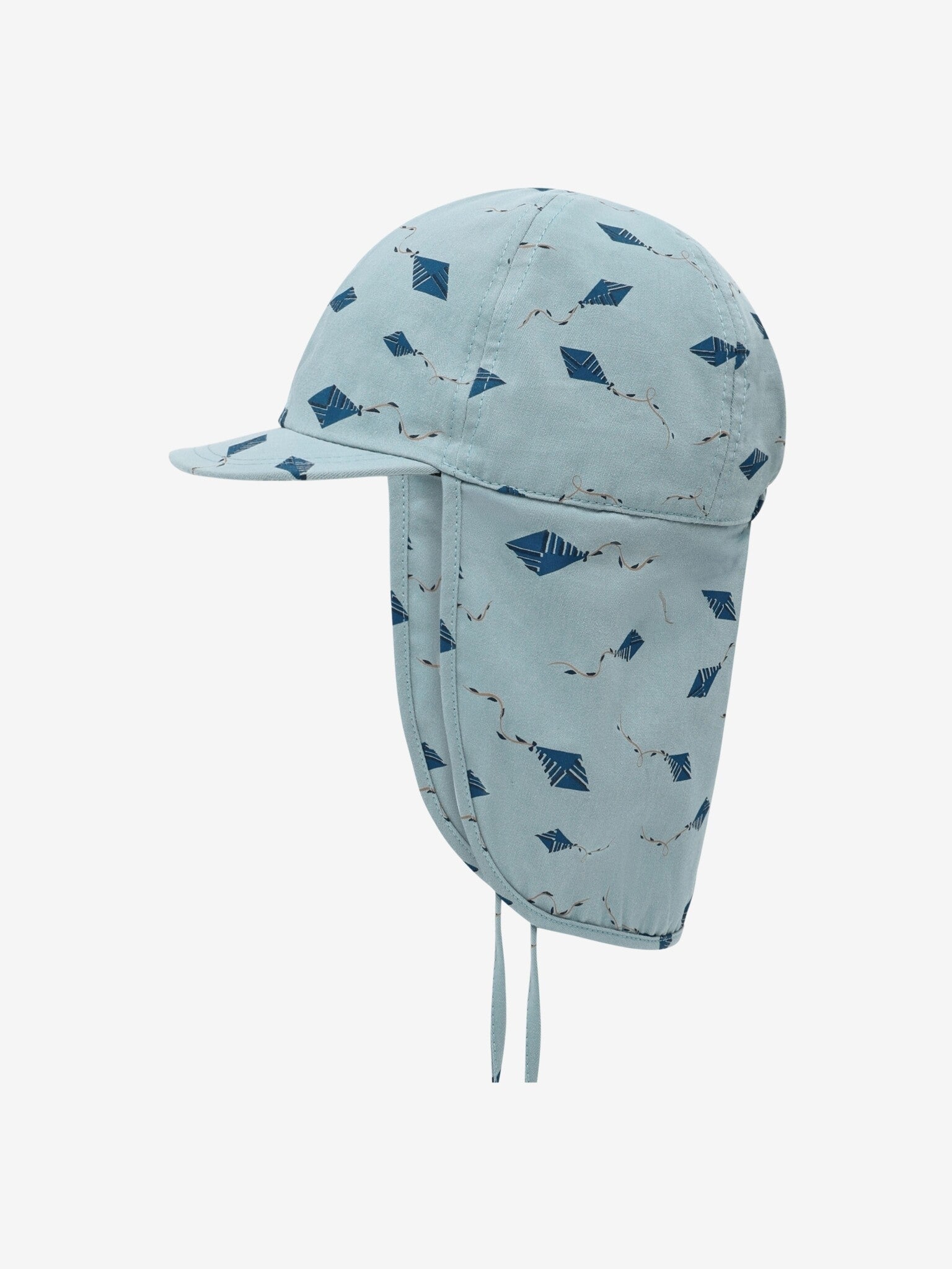 Een coole zomerhoed met een praktische clep en een lange kap aan de achterkant. Elastiek aan de achterkant van het hoofd en koordjes onder de kin zorgen ervoor dat de hoed goed op het hoofdje van het kind past. Hij biedt schaduw voor zowel gezicht als nek. De zonnehoed is gemaakt van 100% katoen. Getest en gecertificeerd volgens UPF 30.