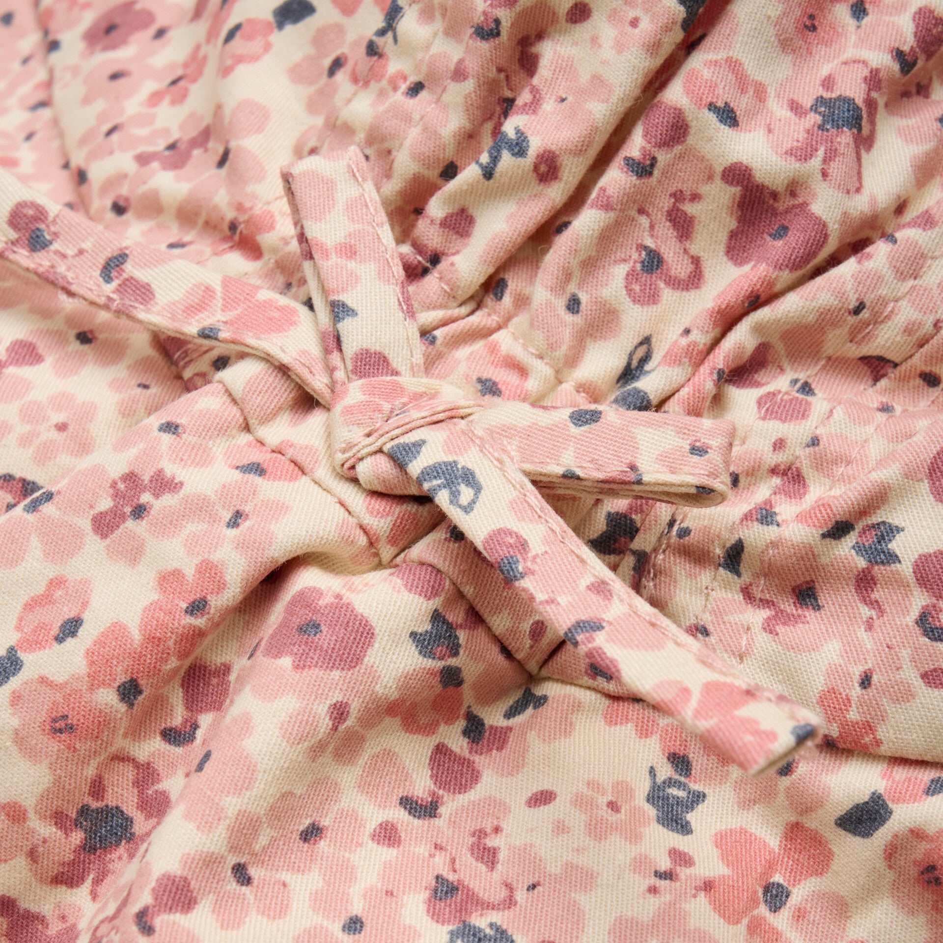 Leuk zomerhoedje met een praktische zonnekap die lang aan de achterkant is. De koordjes onder de kin en achter op het hoofd zorgen ervoor dat het hoedje goed past.