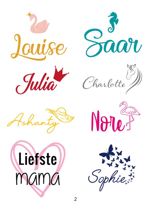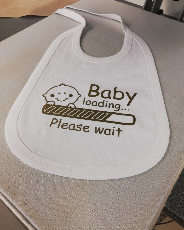 Er zijn nog enkele foto's met onze oude slabbetjes met koord sluiting als voorbeeld, maar de nieuwe modellen hebben een drukknoop sluiting!