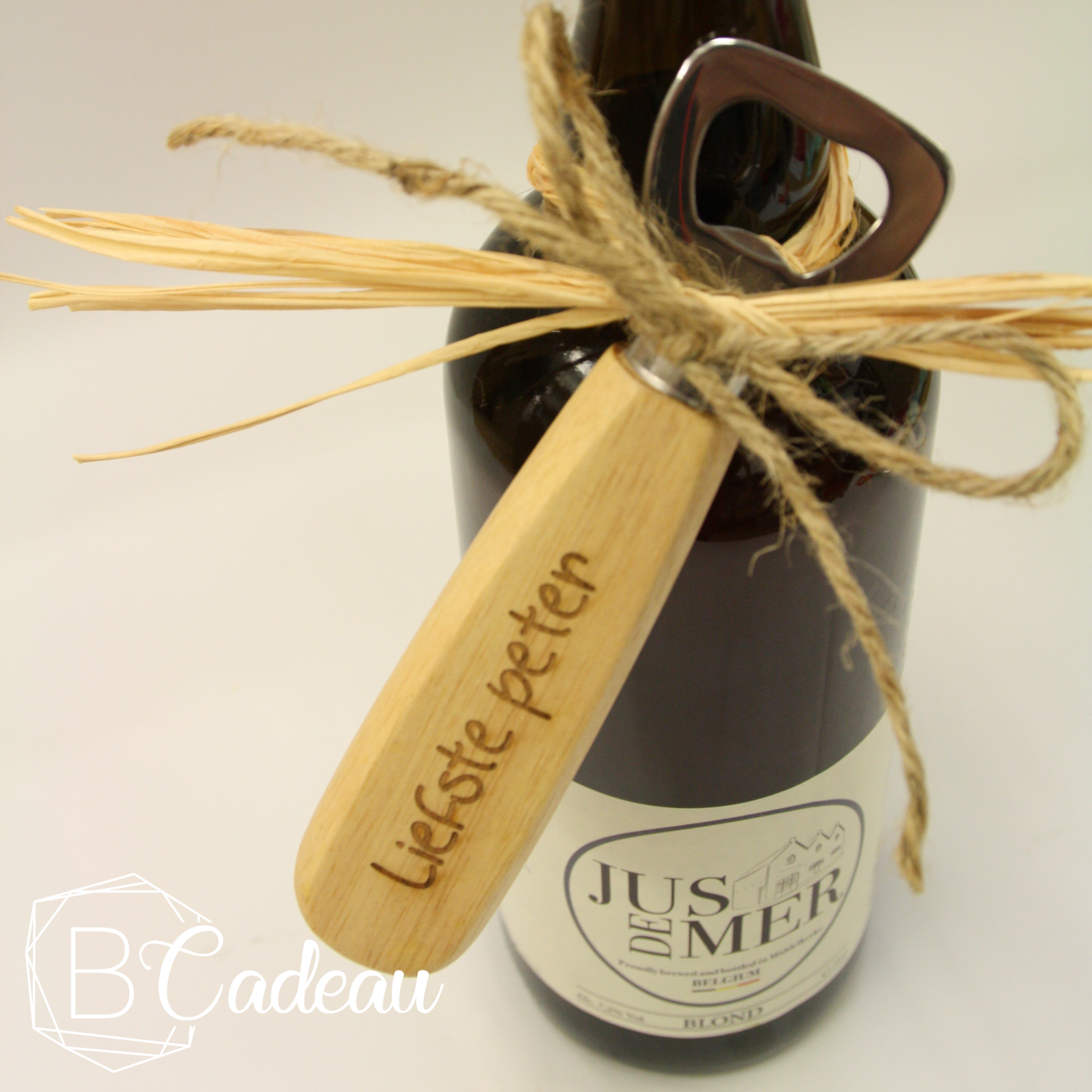 Laat je opener inpakken met een grote jus de mer fles!