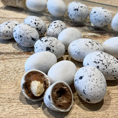 Doos van 0,9 kg, daar zitten ongeveer 150 eitjes in.